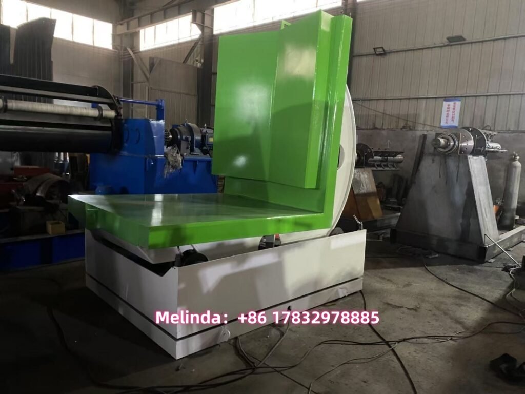 This coil upender we made for one American client, who bought a CTL machine from us in 2024. Since the coil-cut-to-length machine works very well in the client’s factory. The client decided to buy one coil tipper and a new coil cut-to-length line. Let’s learn the features of the 12-Tons coil tipper machine.