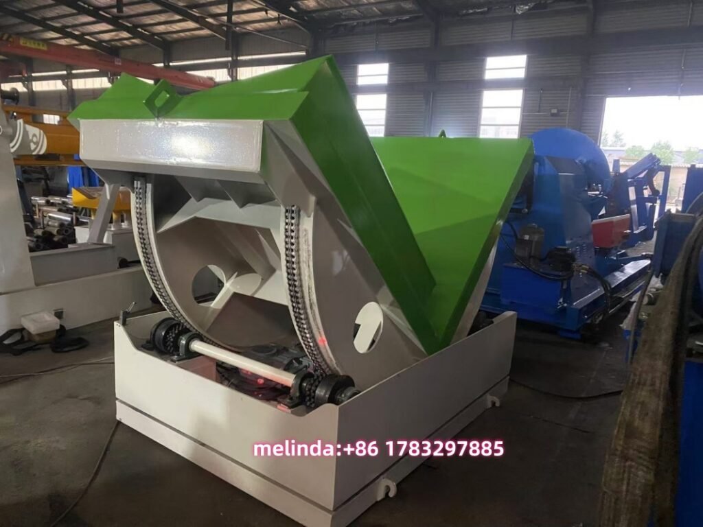 A Coil tipper machine (also called a coil upender, coil turner, or coil rotator) is a specialized equipment of coil handling equipment designed to safely and efficiently rotate or flip large, heavy metal coils (like steel coil or aluminum coil) from a horizontal position to a vertical position, or vice versa.