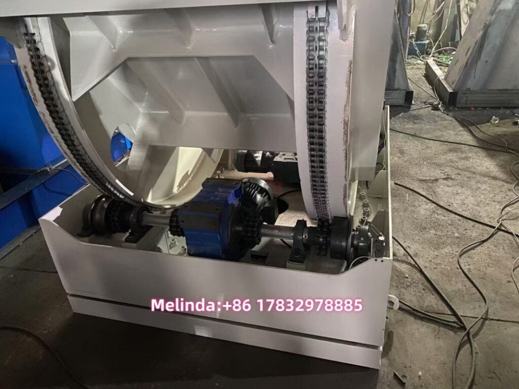 The traditional coil tipper puts the coil onto one side panel, removes the coil from the other side panel. But some clients’ workshop space is limited. So we designed a 360-degree rotary coil tipper, which allows putting the coil and removing the coil on one side.