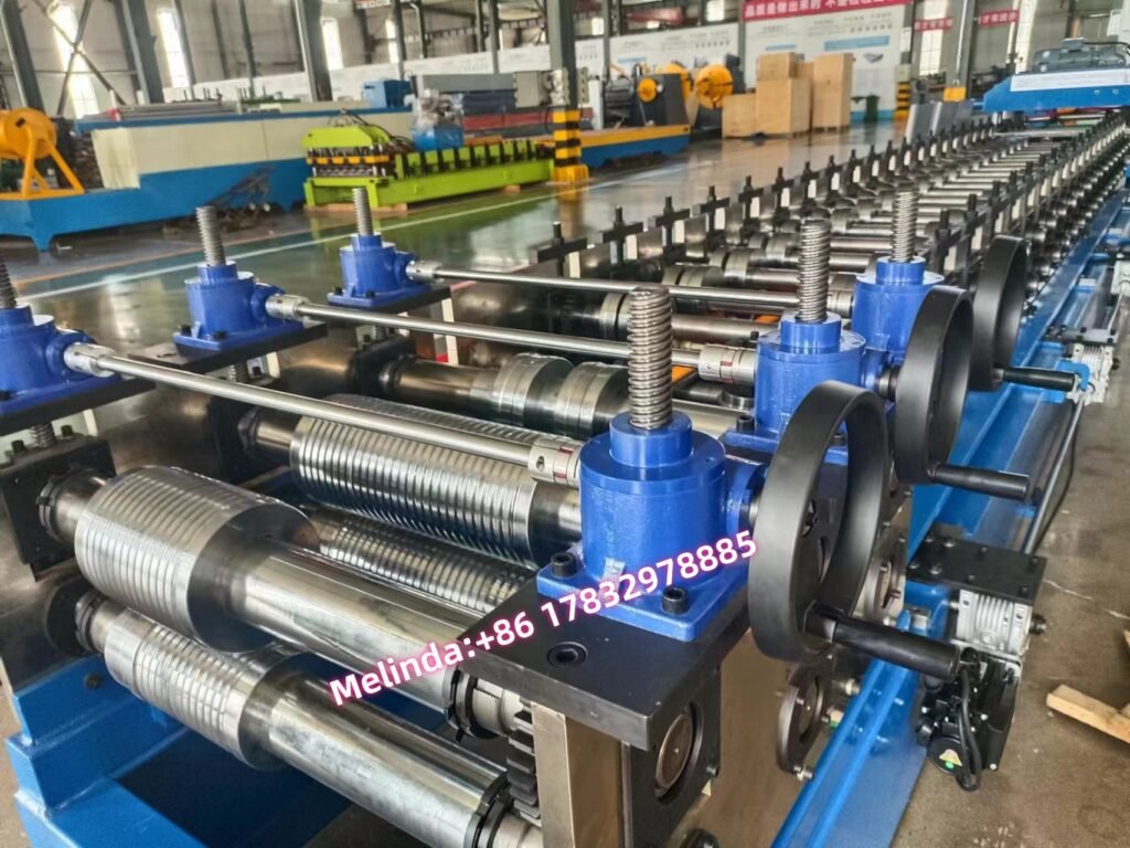There are 3 rolling stations at the end of the forming machine, used to press the ribs. Clients can choose which rolling station to use, depending on the order request. The gap between the up and down rollers is adjustable through the manual wheel.